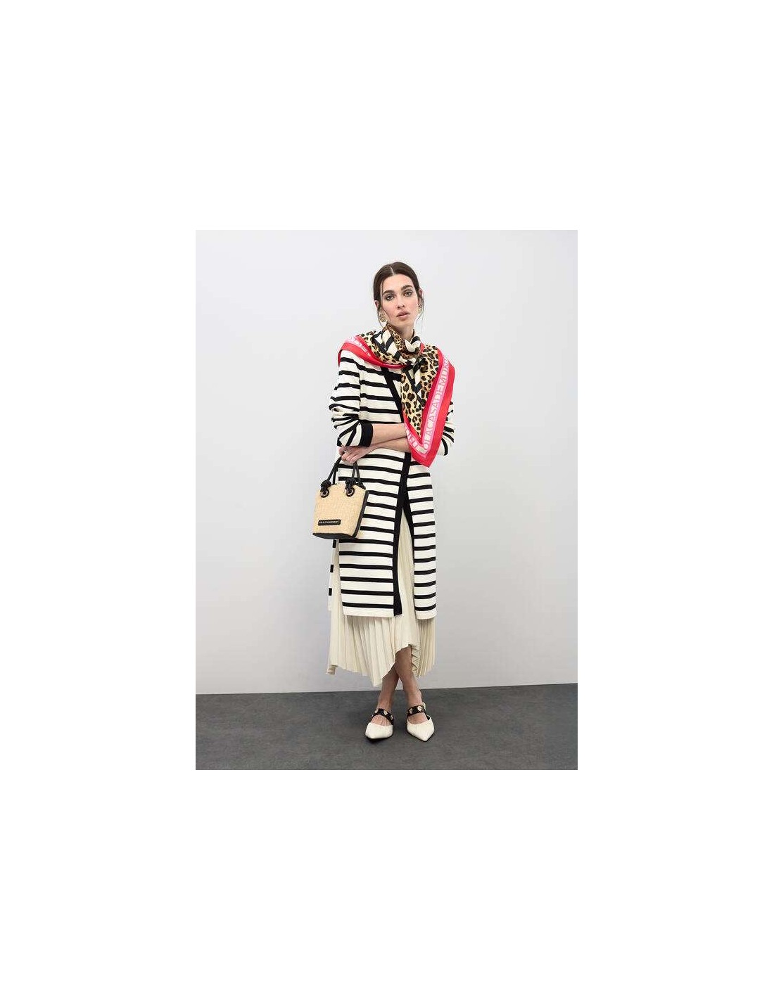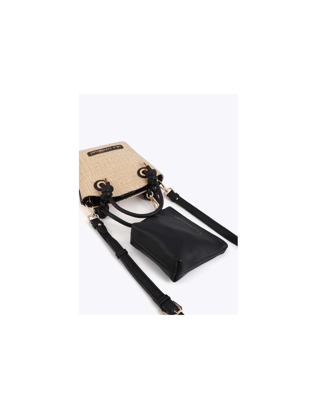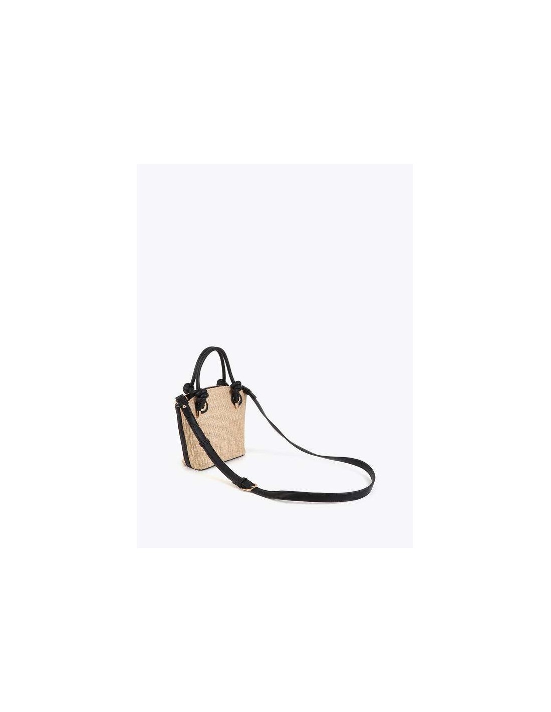 El Bolsito efecto rafia combinada con efecto piel es el complemento perfecto para aportar un aire natural y sofisticado a tus looks. Su diseño en tono crudo con detalles en negro crea un contraste elegante y atemporal, ideal para combinar tanto con estilismos casuales como con propuestas más cuidadas.