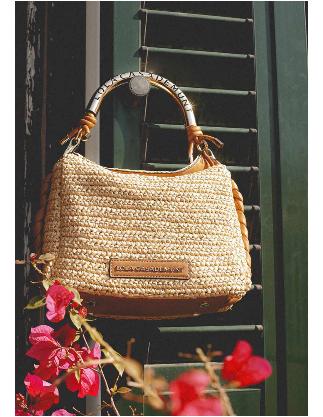 Bolso bandolera efecto rafia asa troquelada con logo · Lola Casademunt