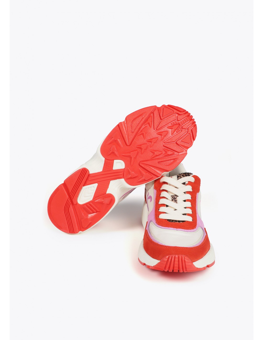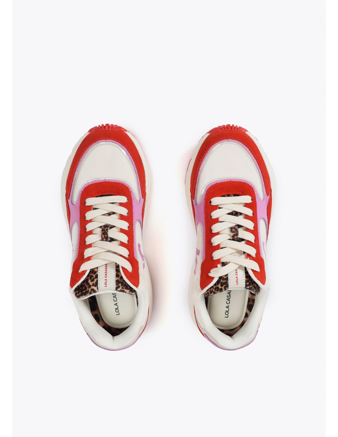 Zapatillas deportivas Lola Casademunt con diseño color block, suela tipo running y mezcla de tejidos técnicos y serraje de piel. Un modelo cómodo, original y lleno de personalidad para elevar cualquier look urbano.