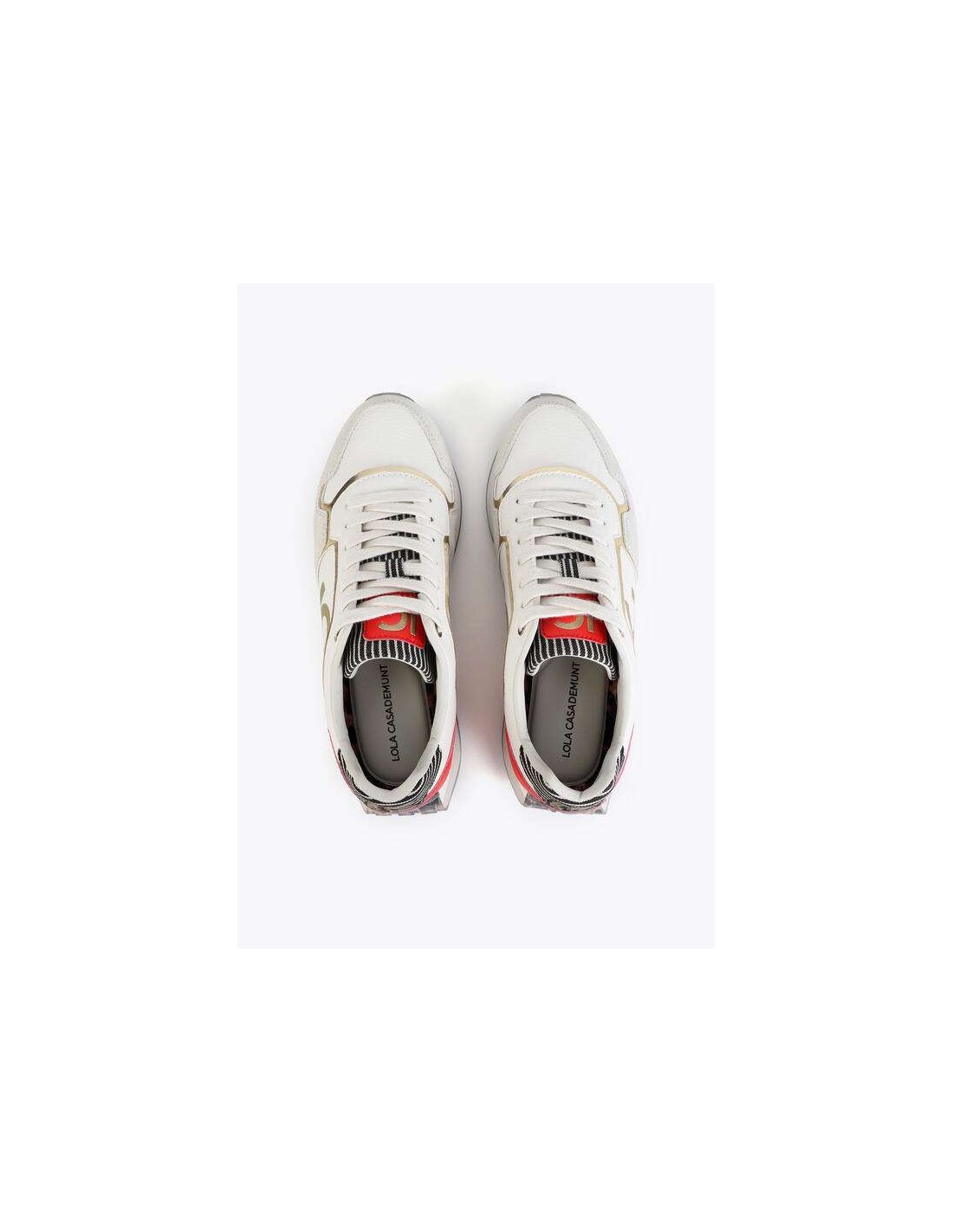 Estas zapatillas deportivas de Lola Casademunt destacan por su diseño moderno y por la combinación de materiales que aportan textura y estilo al conjunto. Su base en color blanco crea un look limpio y versátil que se complementa con detalles en contraste que realzan la estética del modelo.