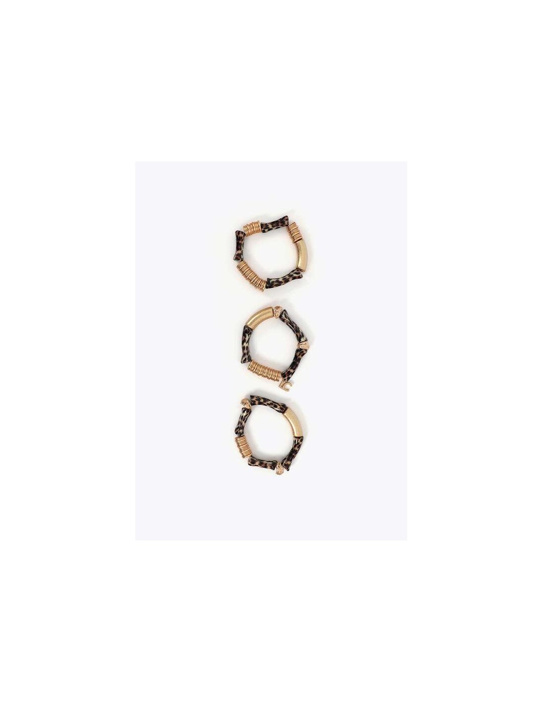 Pack de pulseras elásticas de LOLA CASADEMUNT con diseño efecto bambú, acabado animal print y detalles metálicos dorados.