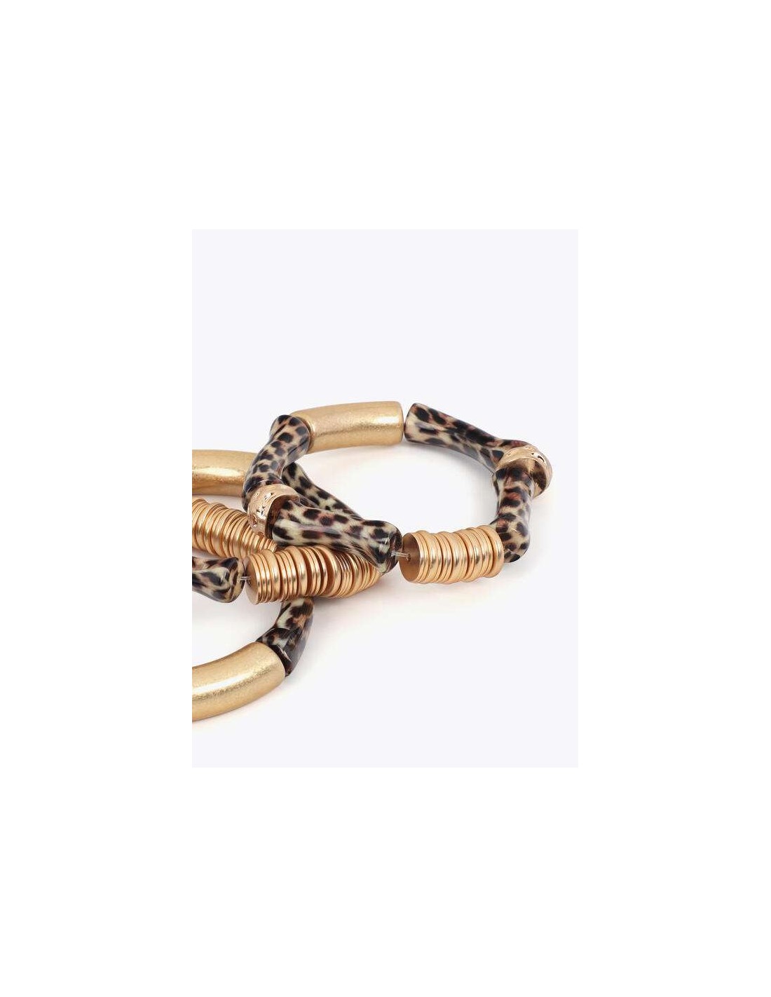 Pack de pulseras elásticas con piezas metálicas efecto bambú animal print