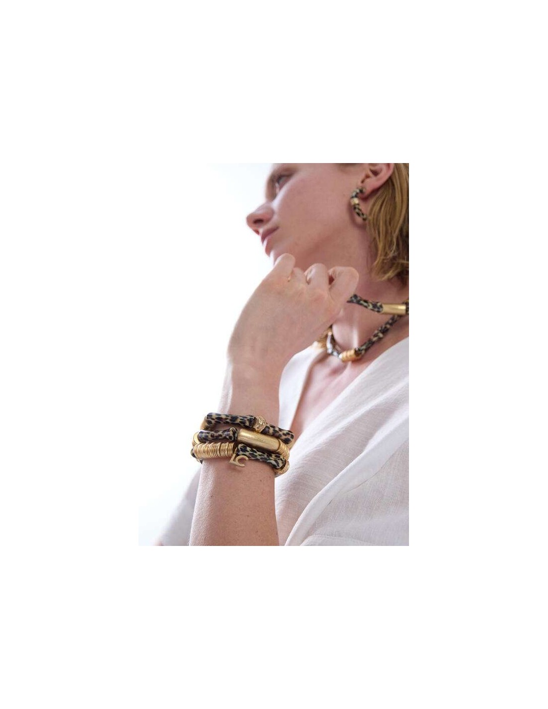 Gracias a su diseño elástico, resultan cómodas de llevar y permiten lucirlas juntas para conseguir un efecto más impactante. Son una opción perfecta para completar estilismos neutros, looks de verano o conjuntos más especiales, y además combinan a la perfección con los pendientes aro bambú animal print de la misma línea.
