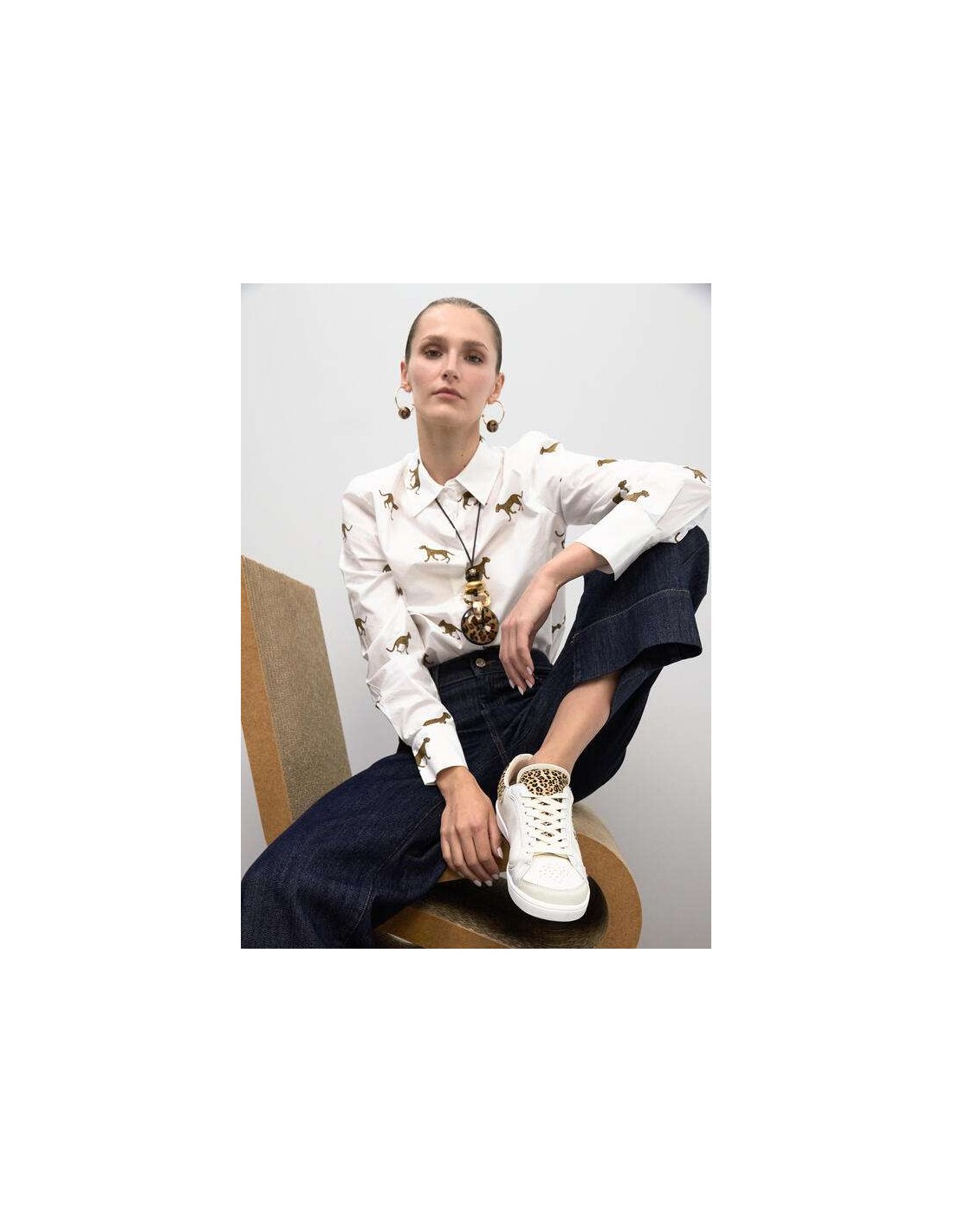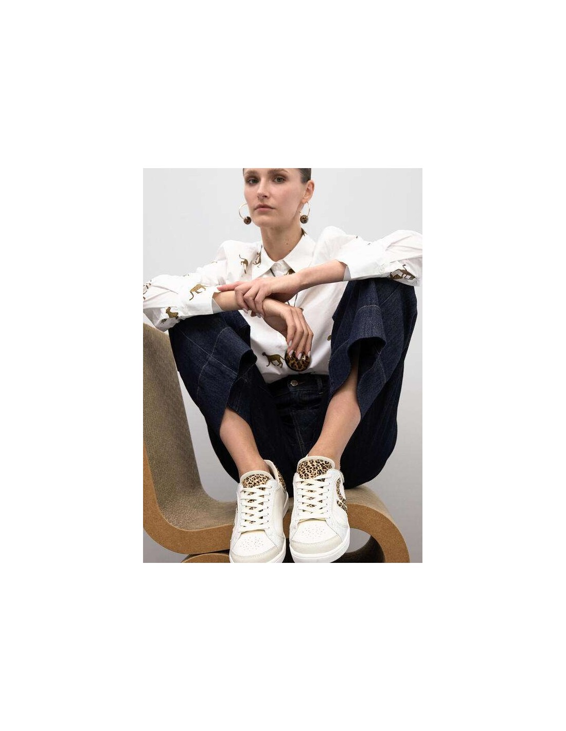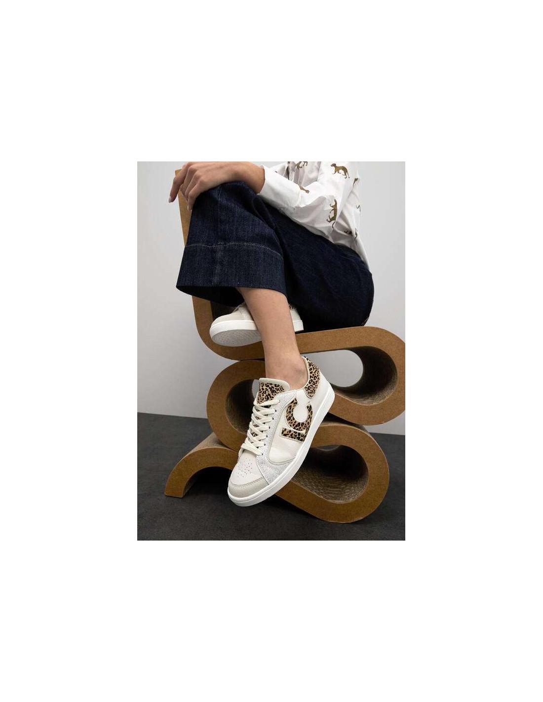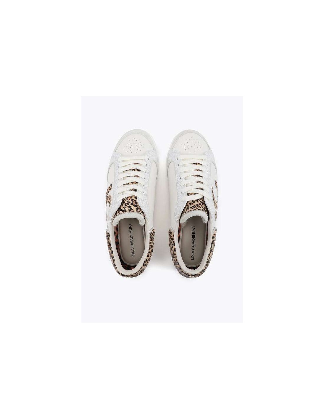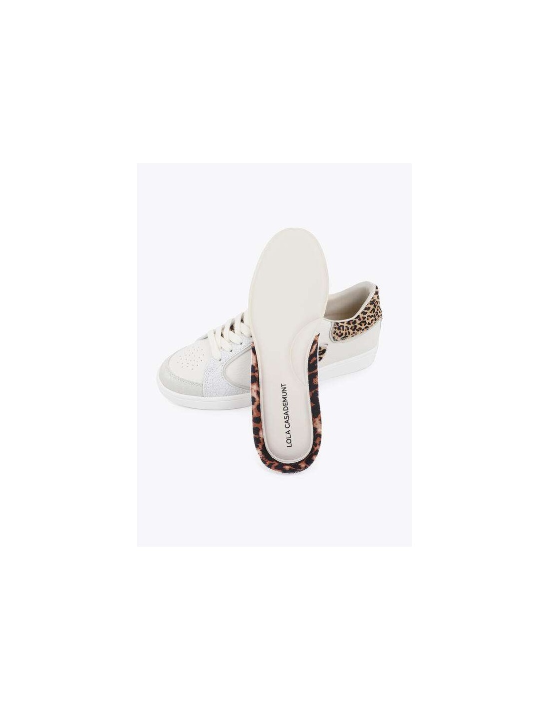 El modelo incorpora el logo LC lateral en estampado leopardo, uno de los detalles más representativos de la marca, además de una pieza trasera también en animal print que refuerza su carácter distintivo. Los detalles en piel y la mezcla de tejidos elevan el diseño y lo convierten en una sneaker versátil y con mucha presencia.