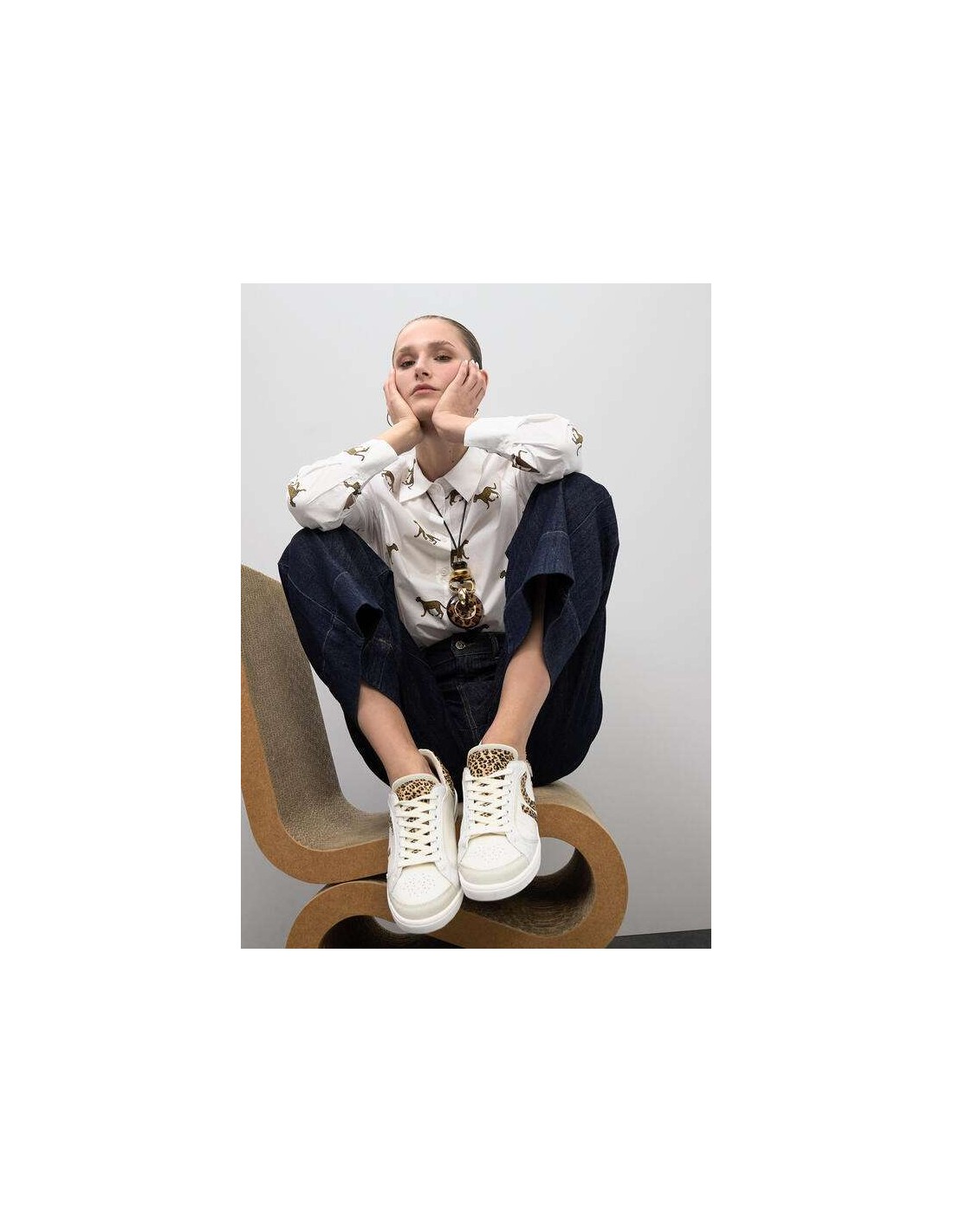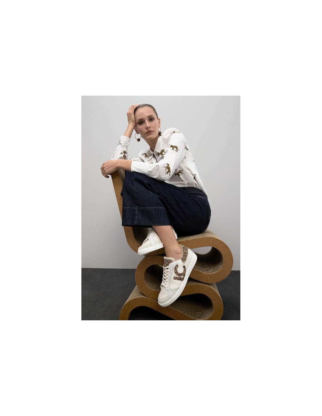 Zapatillas Blancas con Logo Leopardo en Tejidos Combinados – Lola Casademunt