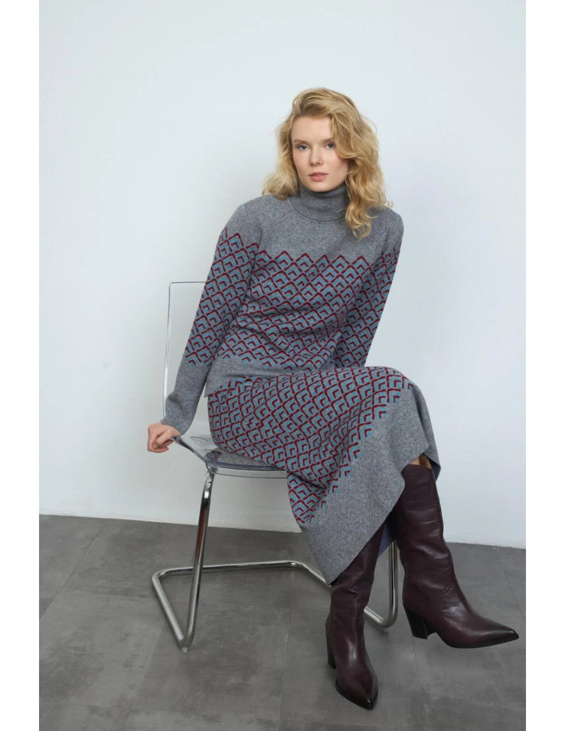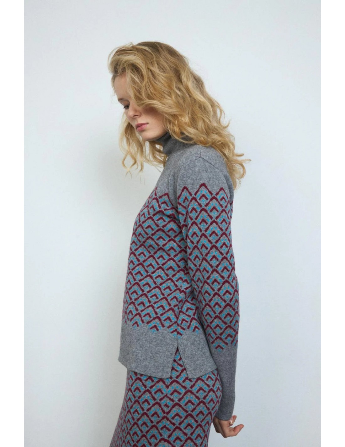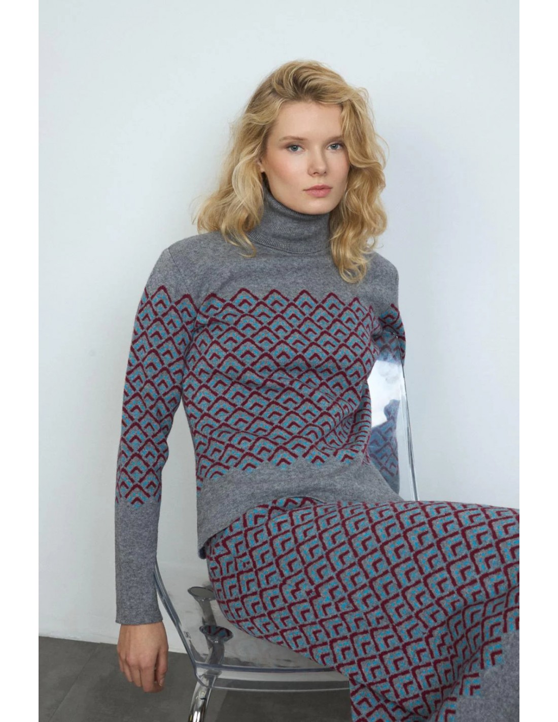 Jersey Caesar de Tinta y Bariloche con cuello alto y diseño geométrico en gris medio. Suave mezcla de viscosa, poliéster y poliamida.
