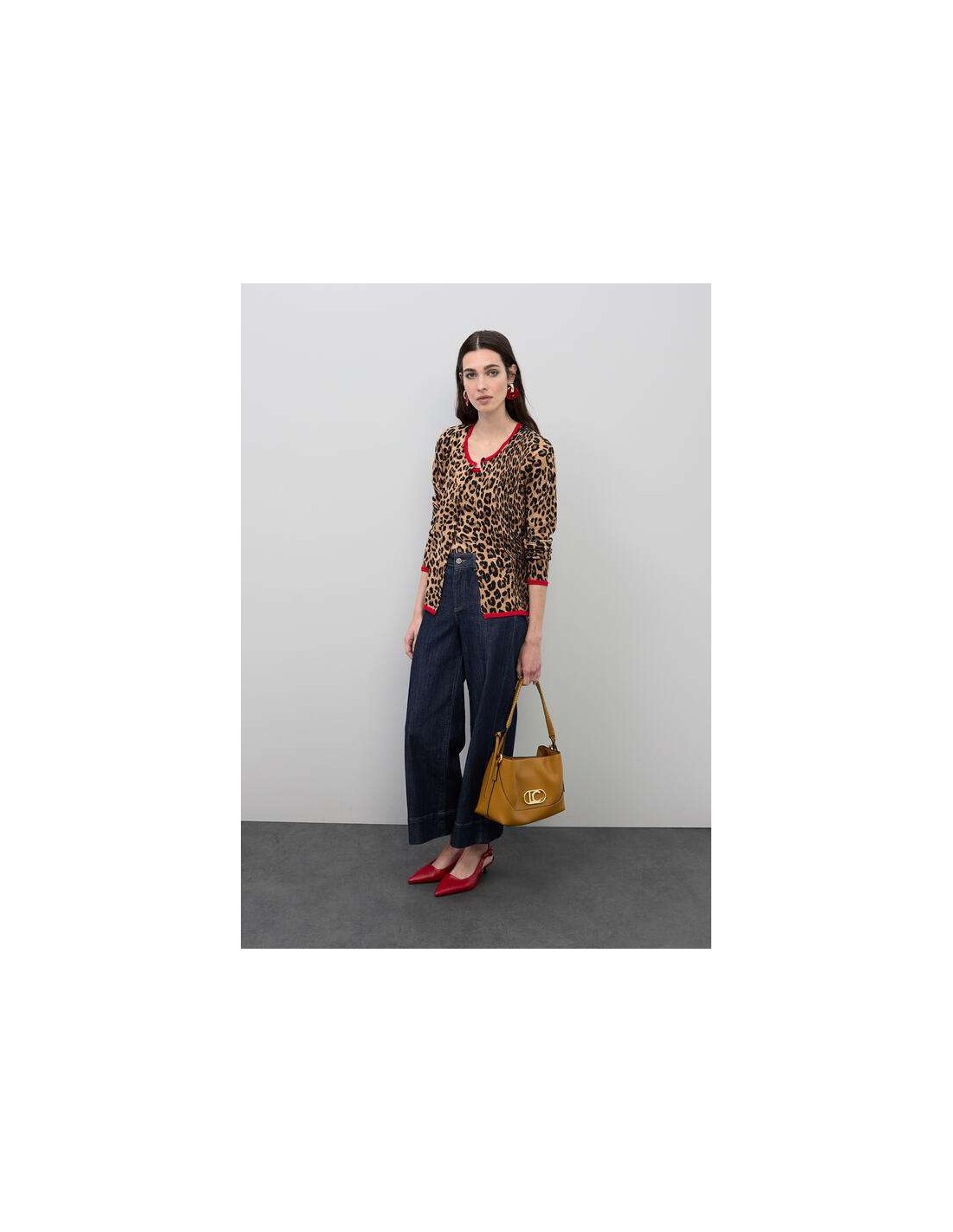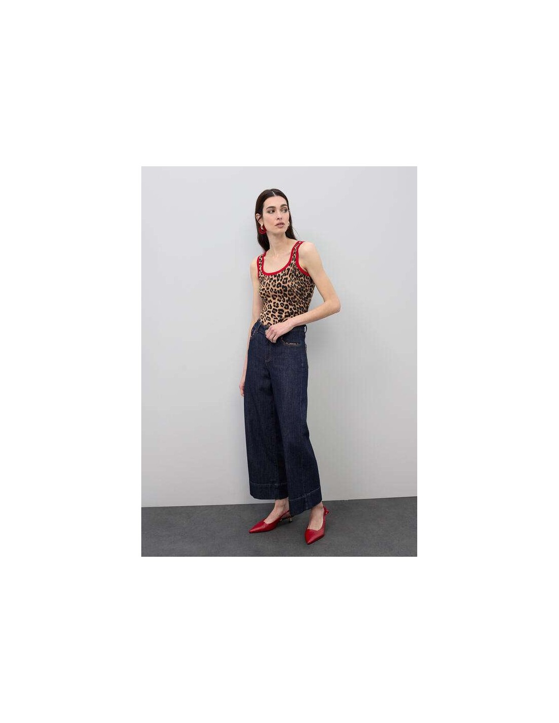 Pantalón Denim Culotte con Vivo Leopardo – Lola Casademunt