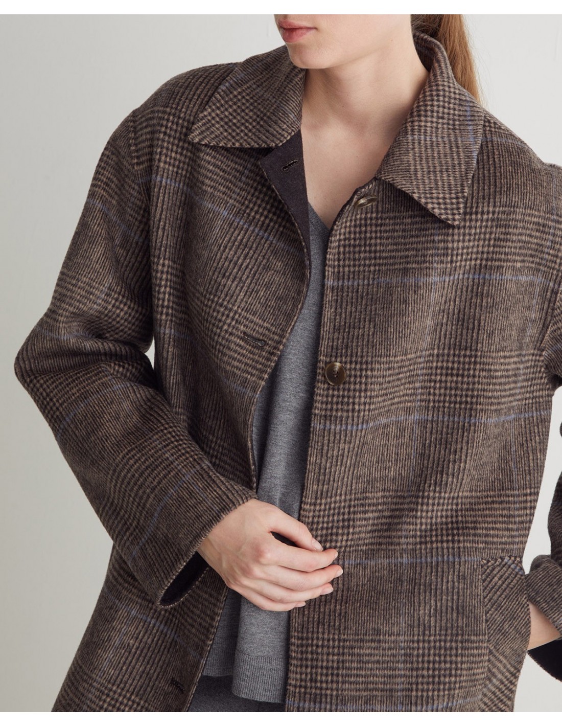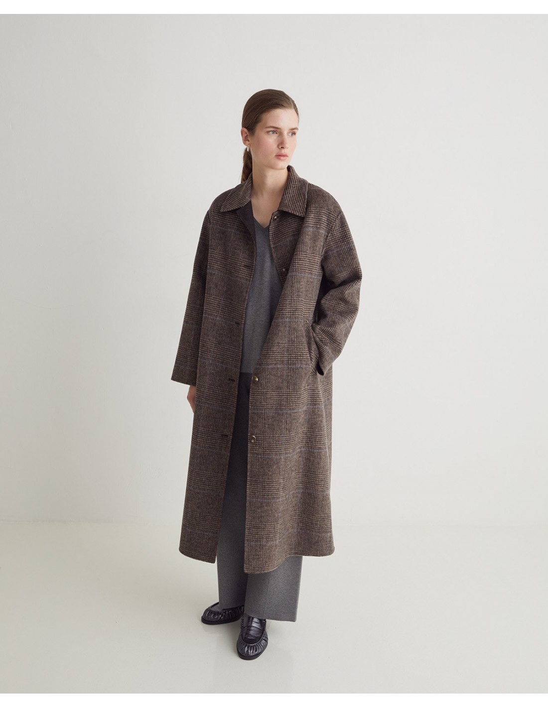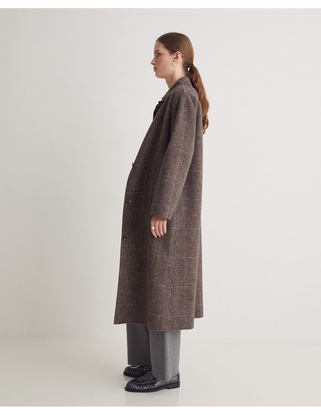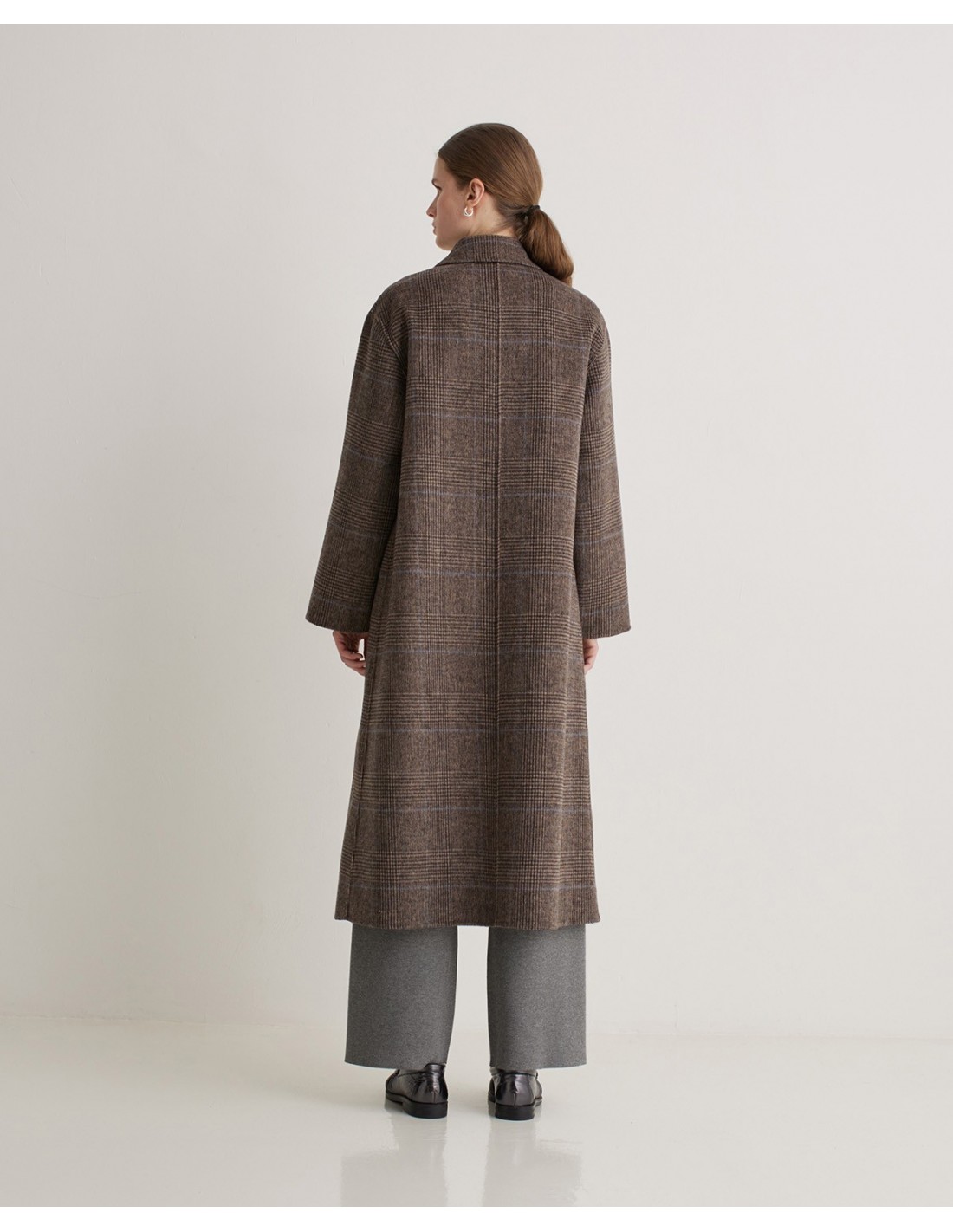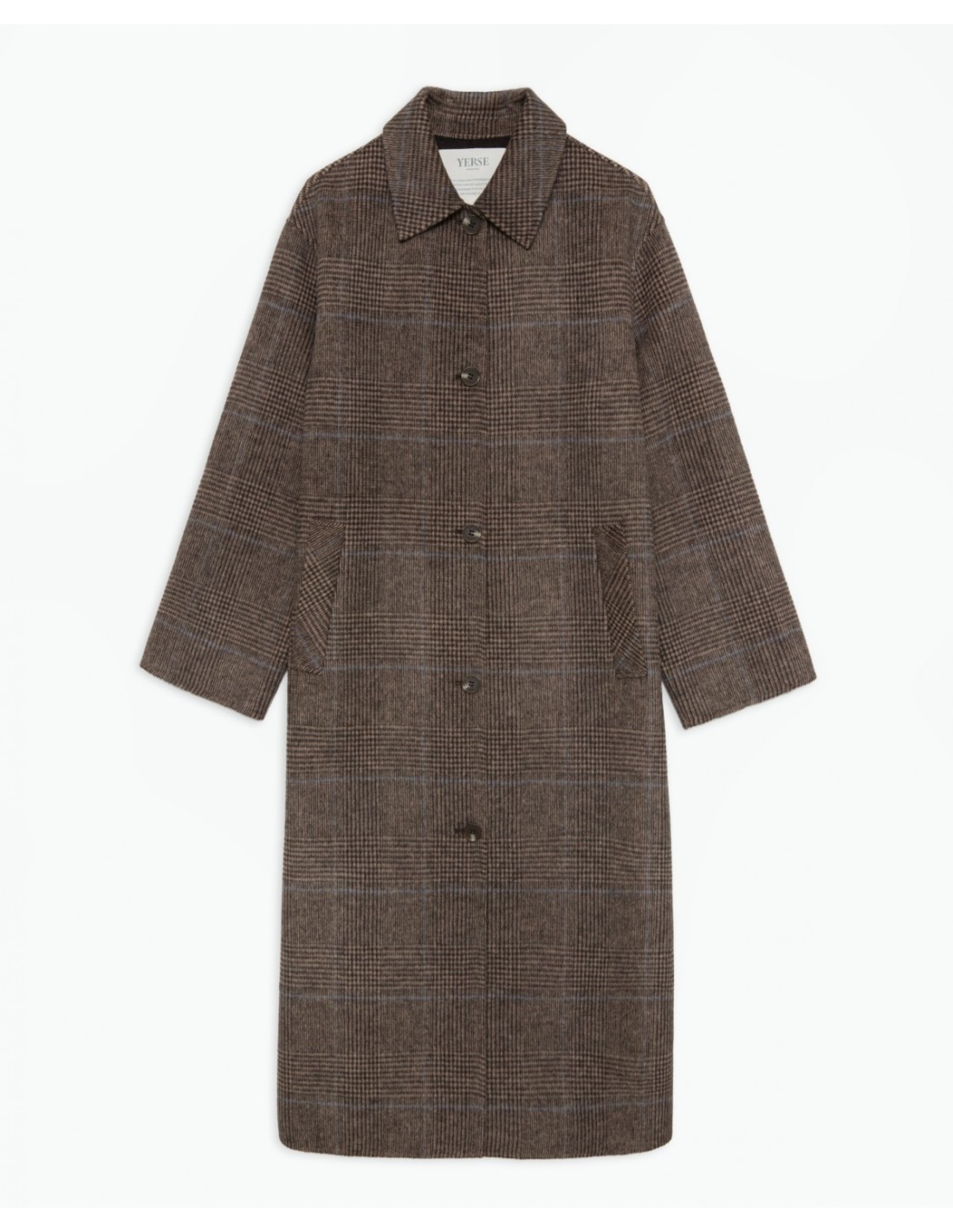 Abrigo largo cuadros marrón handmade – mezcla de lana YERSE