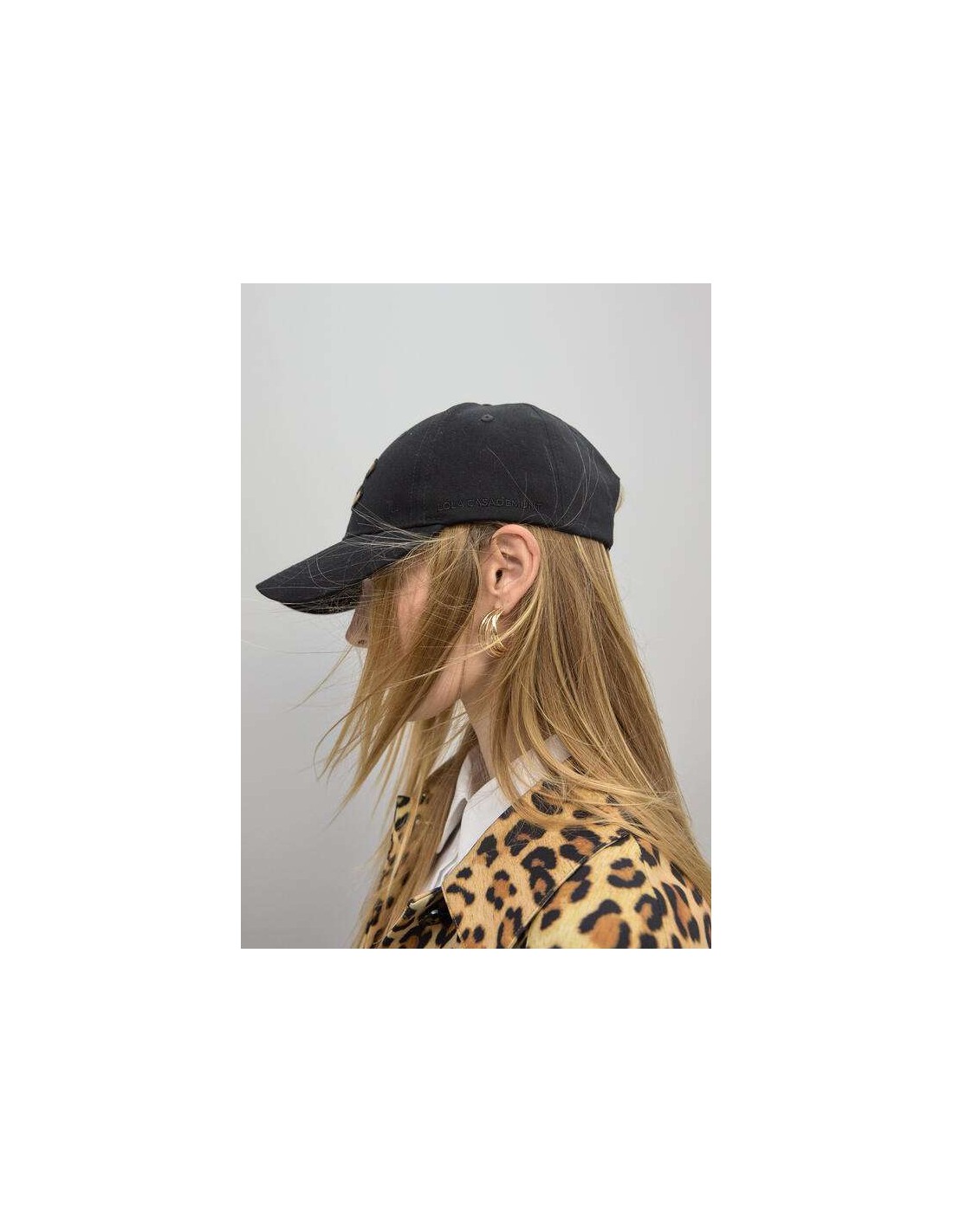 Gorra negra con logo LC y detalle leopardo de Lola Casademunt